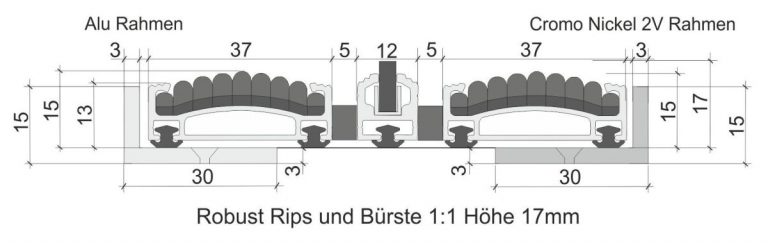 Eingelassene Fußmatten Innen mit Rips- und Bürstenleisten für extra tiefe Bodenaussparungen, aufrollbar und leicht zu reinigen. Stoppt Feinschmutz und saugt Nässe auf.